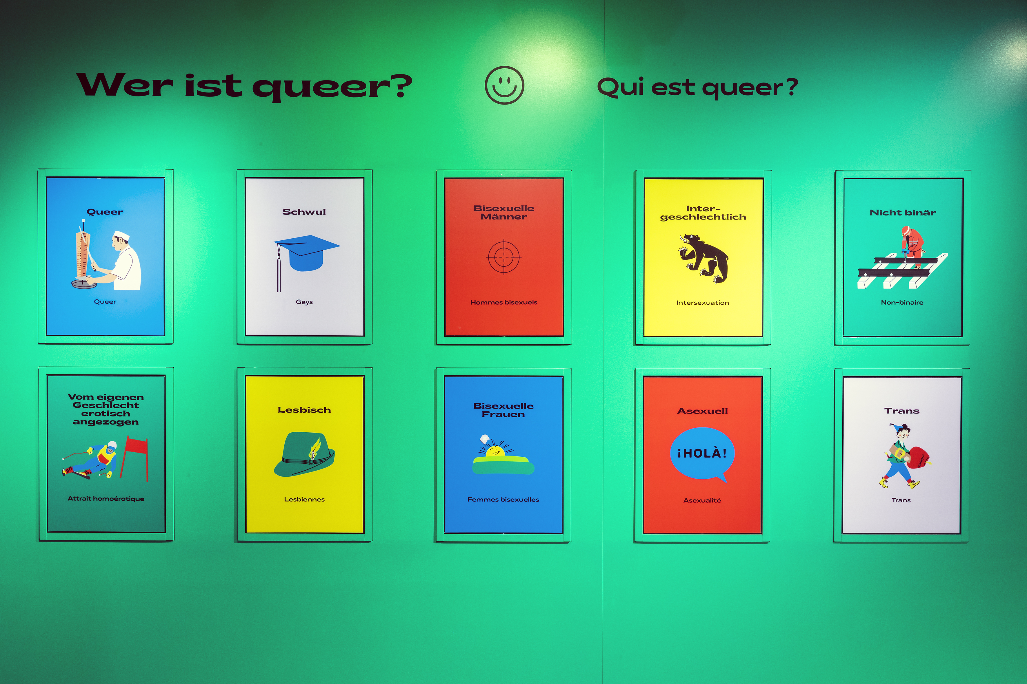Es gibt so viele Trans-Menschen wie Rätoromanisch Sprechende und mehr Lesben als SVP-Mitglieder*innen. Der Einstieg der Ausstellung zeigt eindrückliche Vergleiche.