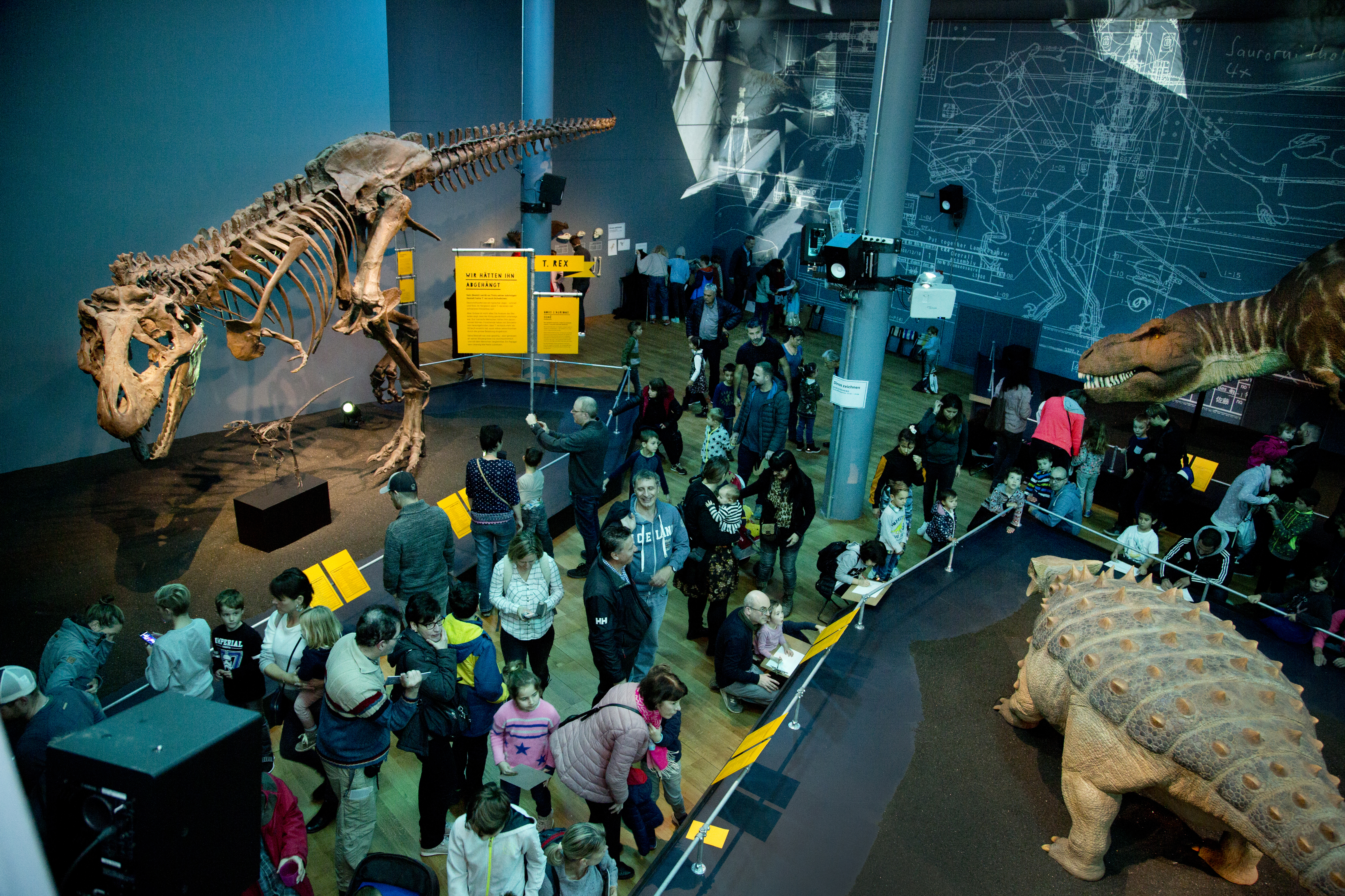 Besucherinnen und Besucher in der Sonderausstellung «T. rex - Kennen wir uns?»