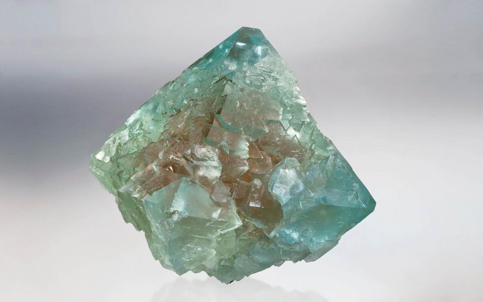 Un remarquable cristal du massif du Gotthard : Fluorine verte à noyau rose, trouvée en 1959 sur le GR Piz Blas.